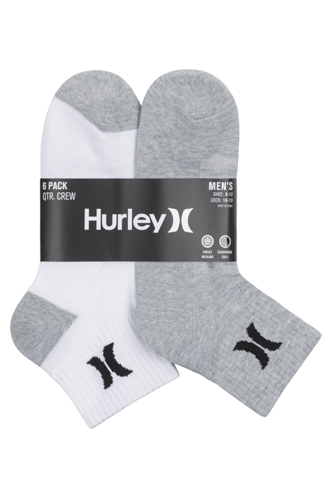 6PK MENS 1/2 TERRY QTR CREW WHITE/MULTI