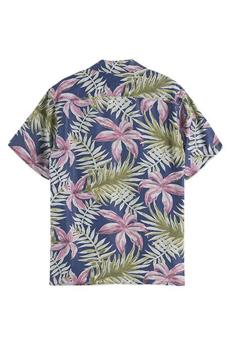 Introducing the Scotch & Soda Allover Printed Indigo Short-Sleeved Camp Shirt, a stylish and versatile addition to any wardrobe. This shirt features a unique allover print in a rich indigo hue, adding a touch of sophistication to your look.