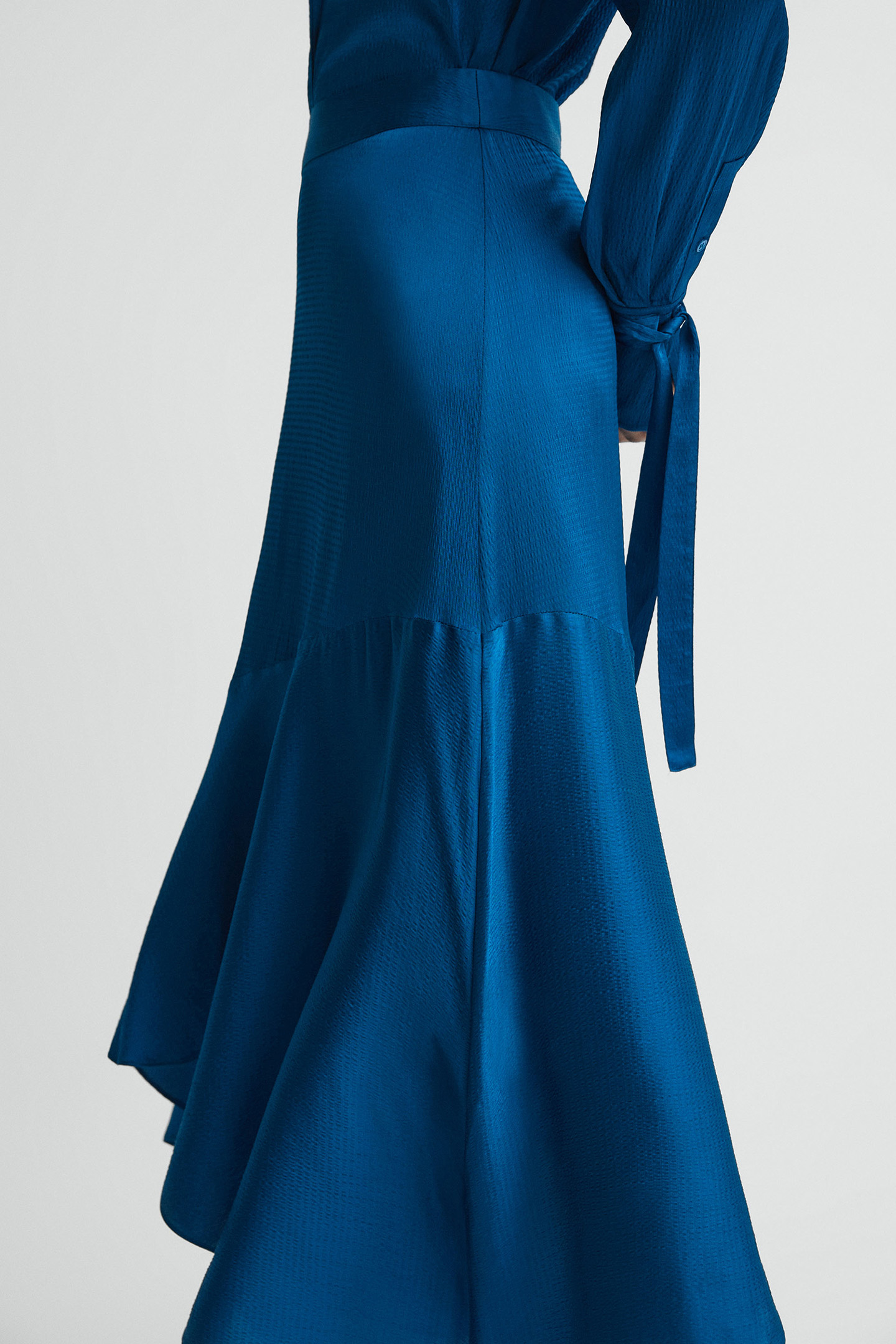 The Dark Blue Lisa Skirt Is Crafted From A Satin Fabrication That’S Been Hammered For A Premium Sheen, Ideal For Your Desk-To-Dinner Moments. It’S Cut With An Asymmetric, Midi Hemline Which Sits High On The Hips. Tuck In The Co-Ordinating Blouse For An Envious, Lustrous Appearance.