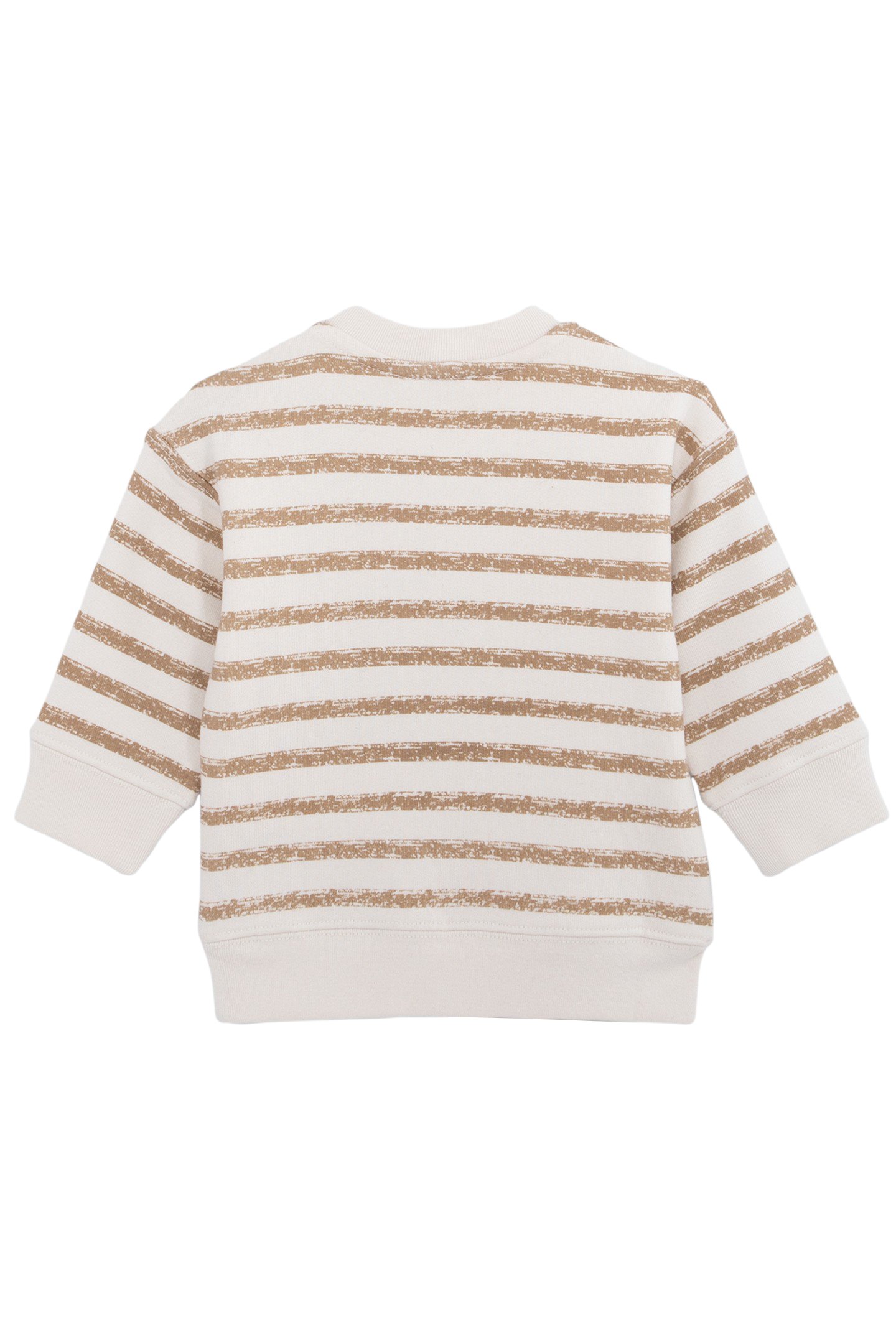 BABY BOY'S ECRU SWEATSHIRT, CAMEL STRIPES AND GREY POCKET