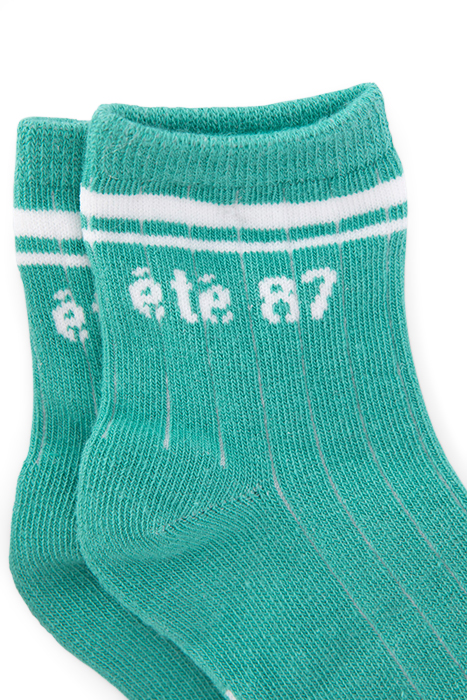 BABY BOYS’ GREEN AND ECRU DUPIONI SOCKS