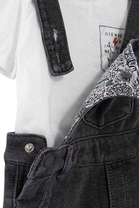 BABY BOYS’ T-SHIRT AND GREY DENIM DUNGAREES OUTFIT