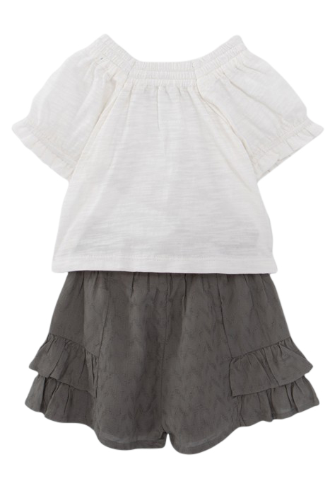 BABY GIRLS’ ECRU TOP AND KHAKI SHORTS