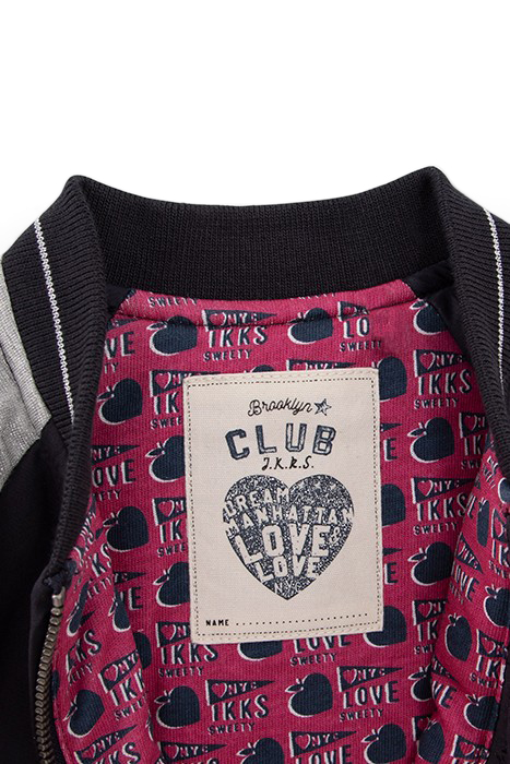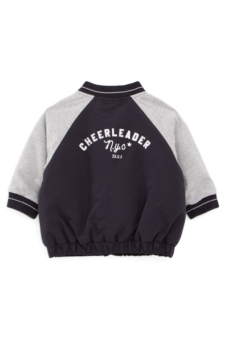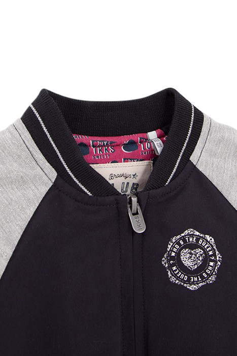 BABY GIRLS’ NAVY BASEBALL JACKET WITH GREY LUREX SLEEVES