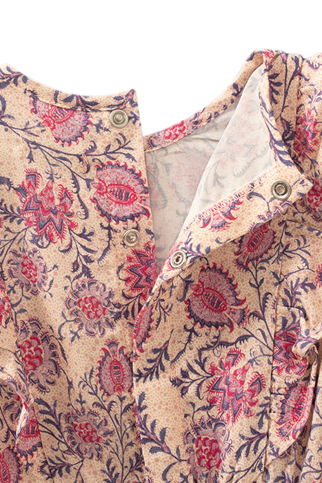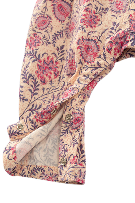 Just one piece for total comfort, the jumpsuit is a star piece in a baby’s wardrobe. The floral paisley print on a pink background takes on a Boho vibe.