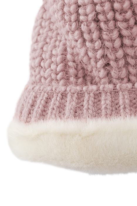 BABY GIRLS’ POWDER PINK FUR-LINED KNIT BEANIE WITH POMPOM DU