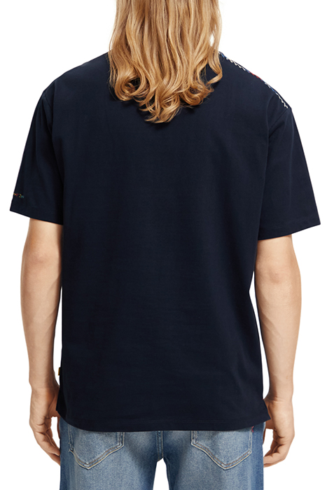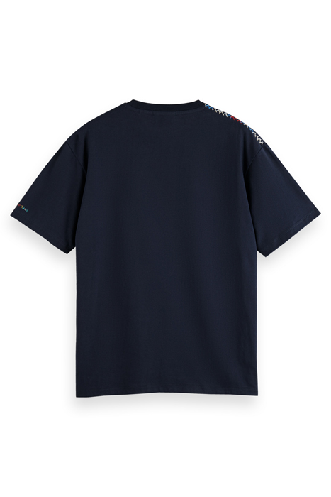 Elevate your casual wardrobe with this effortlessly cool Bandana Applique T-Shirt from Scotch & Soda. Crafted from high-quality materials, this stylish tee features a unique bandana applique design on the front, giving it a trendy and edgy look. The classic navy color adds versatility, making it easy to pair with your favorite jeans or shorts for a laid-back yet stylish outfit. Perfect for everyday wear or a casual night out, this T-shirt is a must-have addition to your wardrobe. Add a touch of personality to your look with this standout piece from Scotch & Soda.