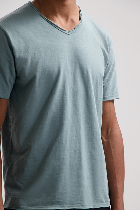BASIC V-NECK TEE SLUB JERSEY STORMY SEA