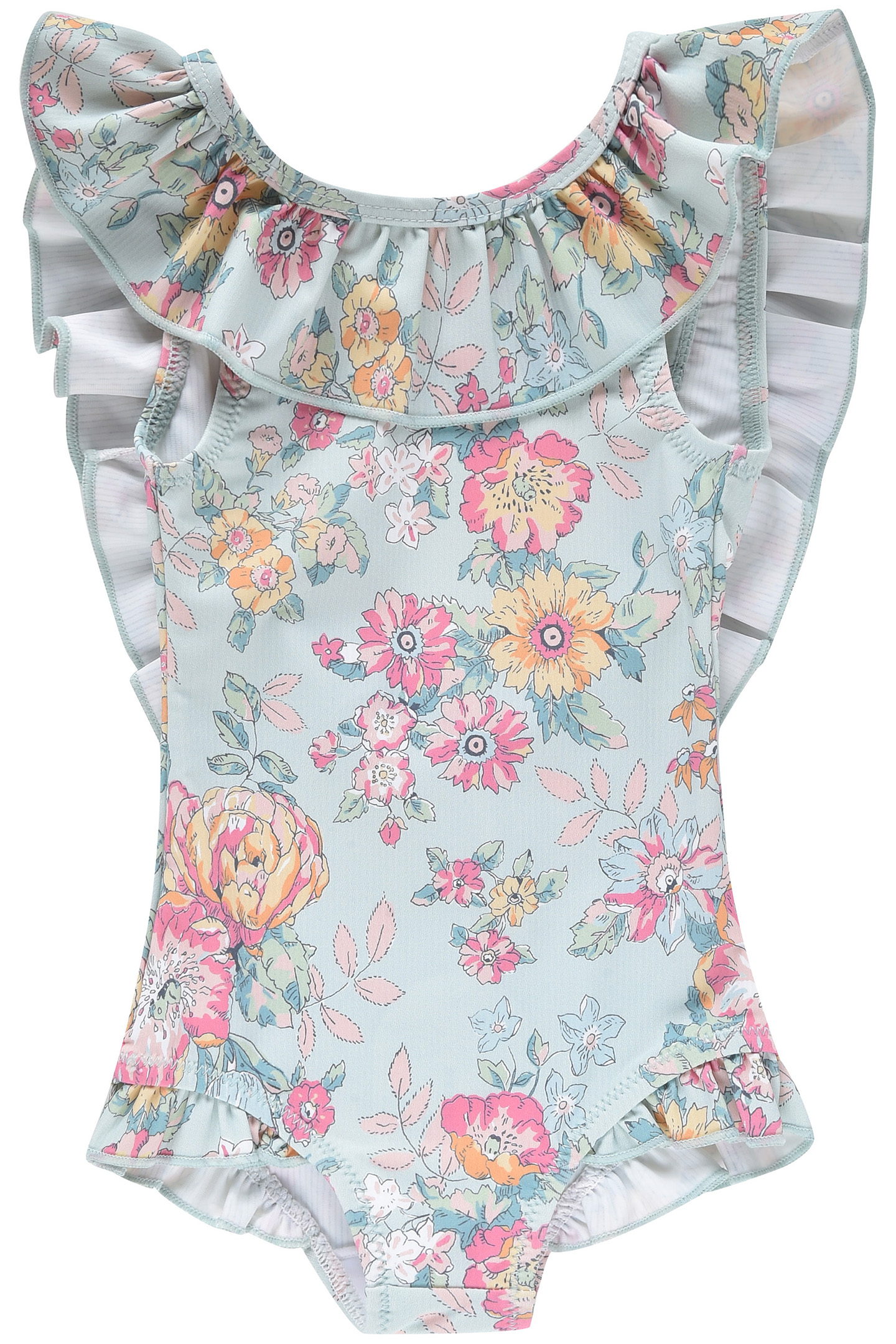 Vintage-Inspired, This One-Piece Swimsuit Promises A Sunny And Flowery Vacation. We Love Its Ruffled Straps And Its Bare Back That Allows The Sun'S Rays To Tickle The Skin.