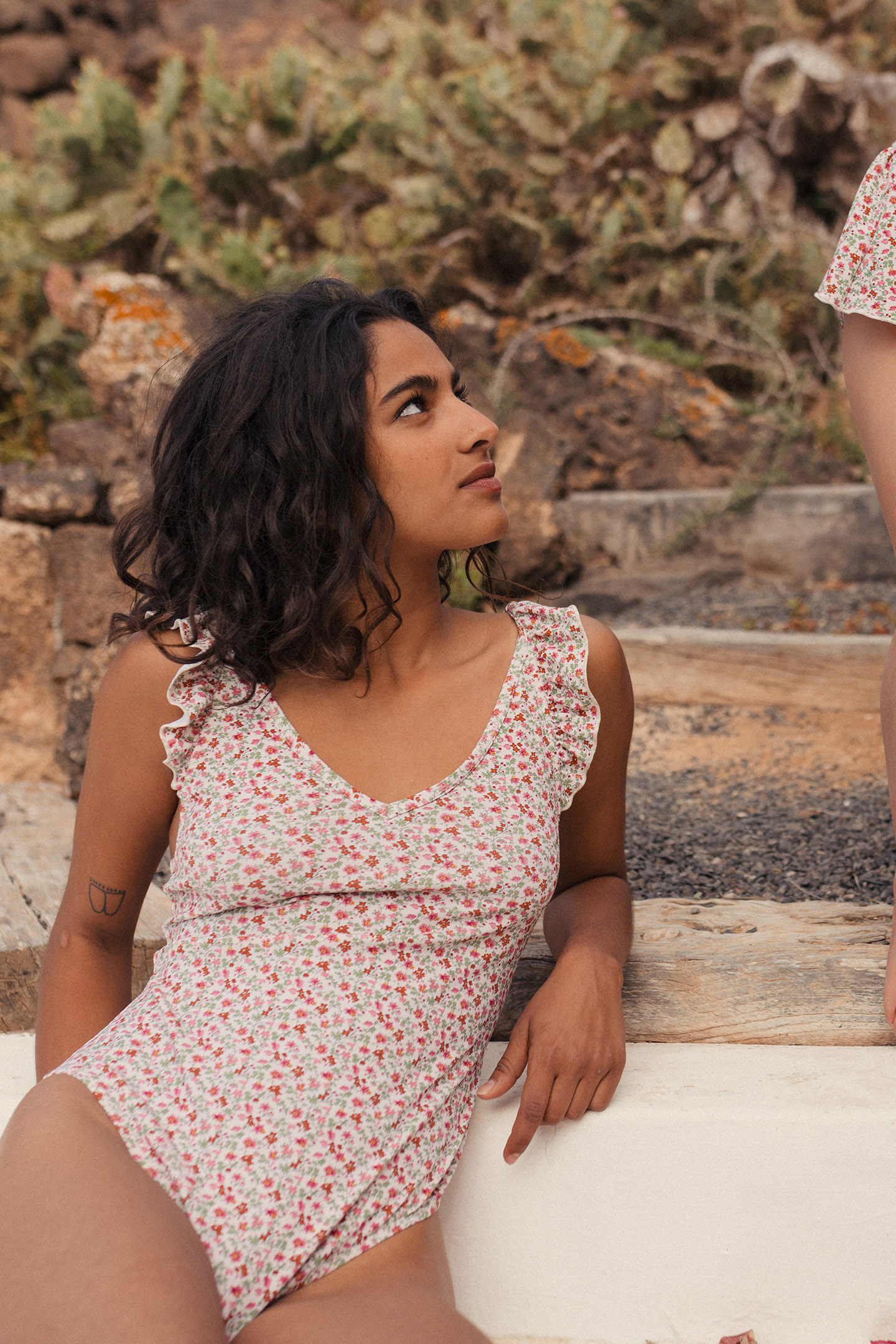 With A Back As Plunging As The Big Blue, This One-Piece Bathing Suit Is Already One Of Our Bestsellers. Its Ruffles At The Shoulders And Ties In The Back Make It A Unique Bohemian Item To Harmonize As Desired.