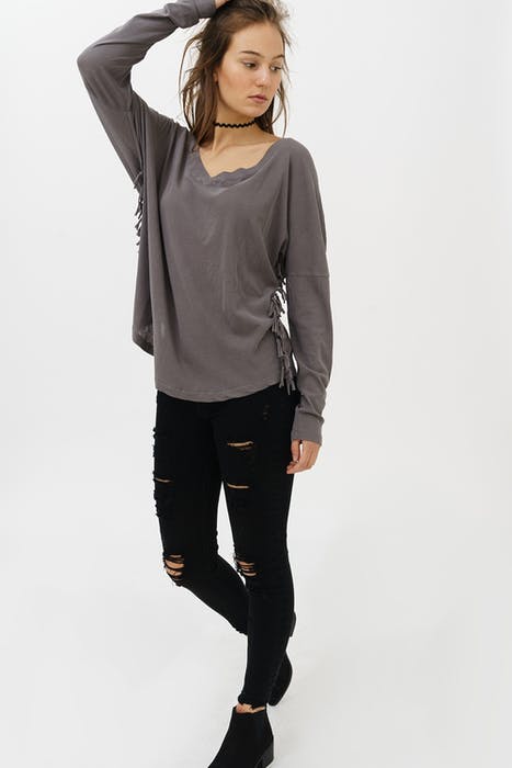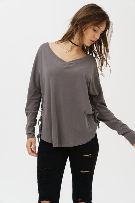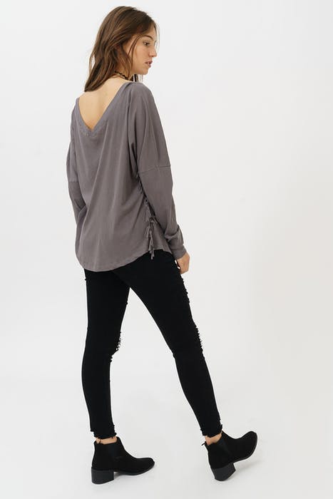 V-neck longsleeve with fringes