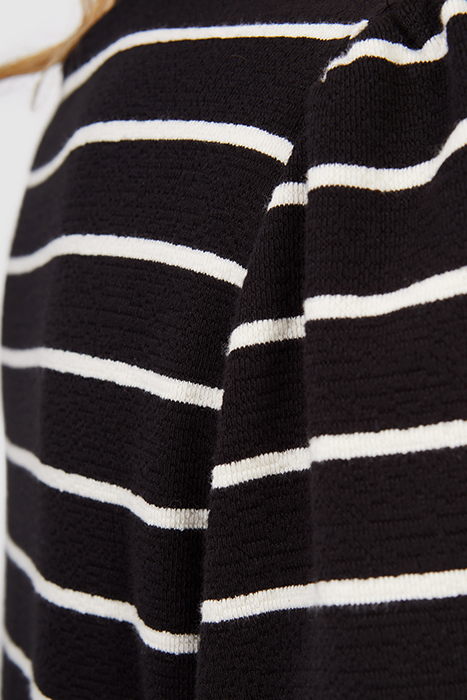 BLACK AND ECRU KNIT BUTTONED SAILOR-STRIPE DRESS