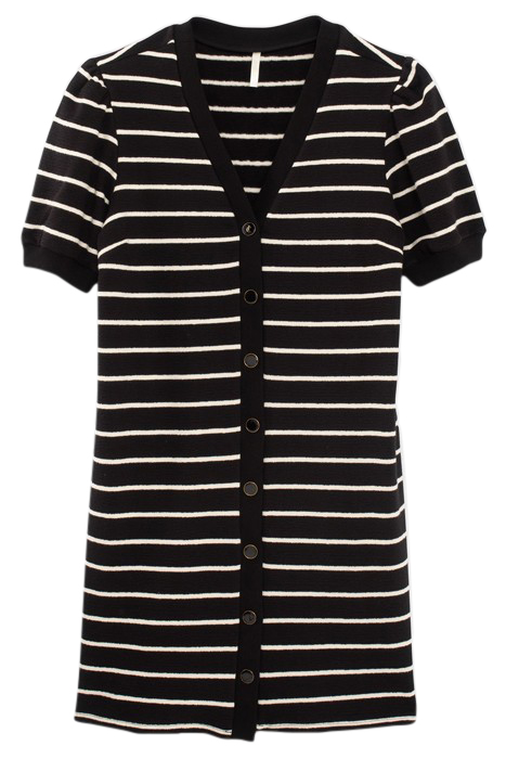 Black Straight Dress V-Neck, Short Sleeves Knit With Ecru Stripes Buttons On Front To Fasten Ribbing On Neck, Cuffs And Button Plackets Dress Length: 88 Cm