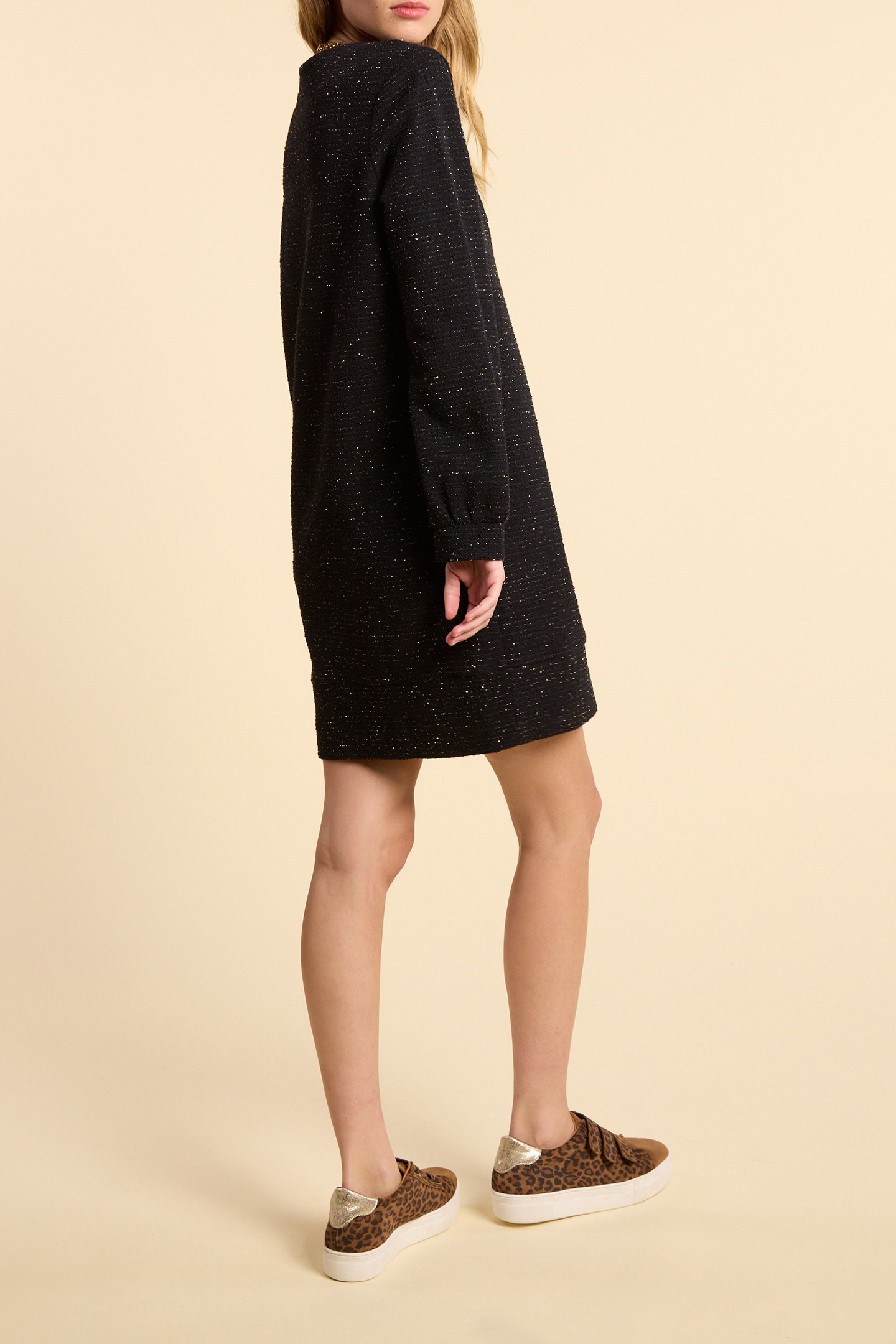 BLACK KNIT DRESS WITH GOLD STRIPES