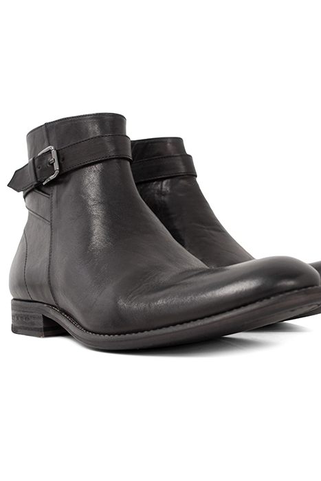 BLACK LEATHER BOOTS WITH BUCKLED STRAP BLACK