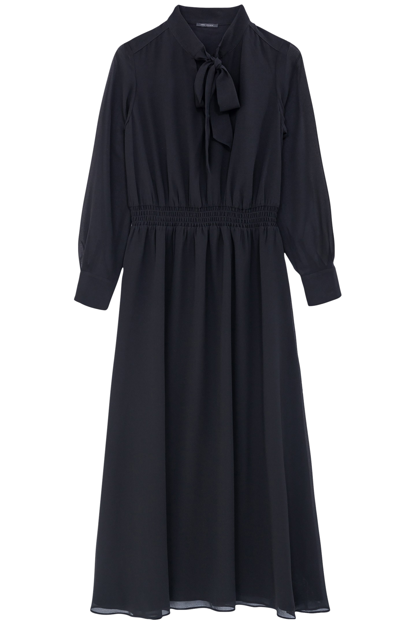 Length, Elegance. That'S The Proposition Of This Women'S Dress. Made From Black Polyester Voile, It Features A Lavallière Collar And Smocking At The Waist.