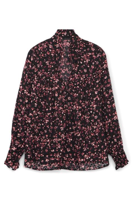 BLACK SHEER BLOUSE WITH PINK VELVET PRINT