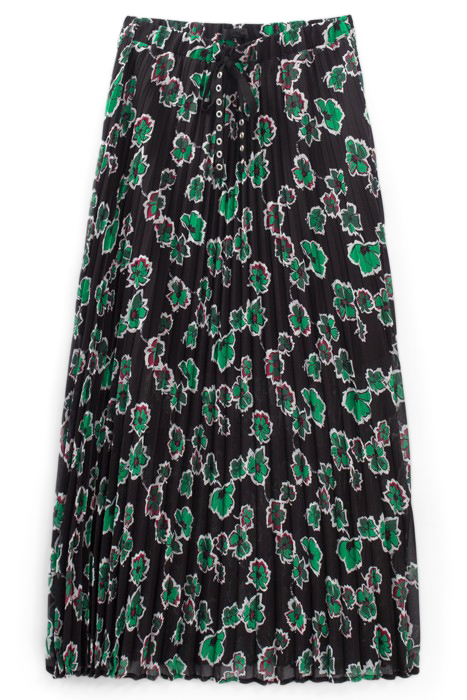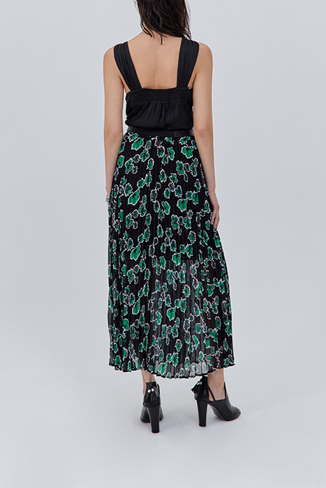 BLACK XL FLORAL PRINT LONG PLEATED SKIRT