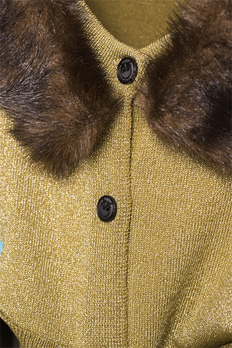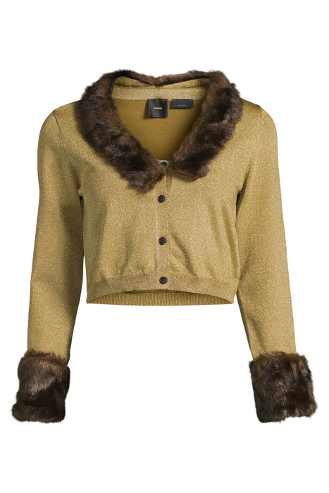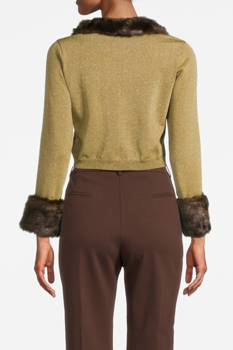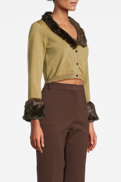 Cropped Long-Sleeved Cardigan In Plated Knit Viscose And Lurex. The Wide V-Neck And Cuffs Are Embellished With Faux Fur Trims. Front Button Fastening.