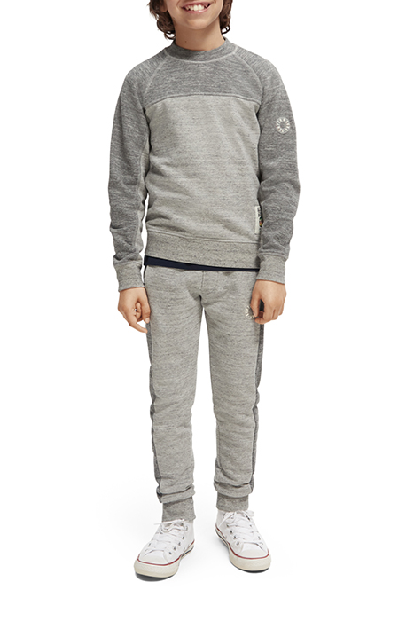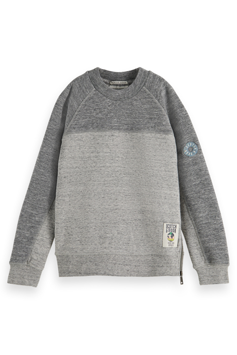 BOYS CONTRAST MELANGE CREWNECK SIDE-ZIP SWEATSHIRT GREY MELA