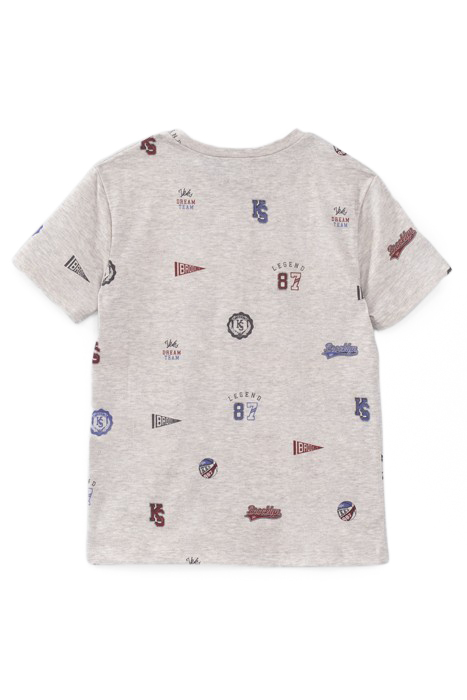 BOYS’ GREY ALL-OVER BADGES ORGANIC COTTON T-SHIRT
