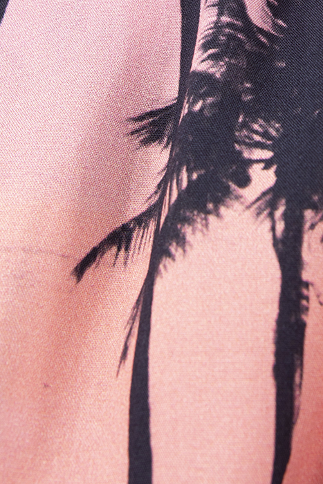 A Placed Image Of Palm Trees And A Surfer. A Deep-Dye Effect In The Colours Of The Sunset. This Flowy Shirt Is Heading For A Holiday In The Sun.
