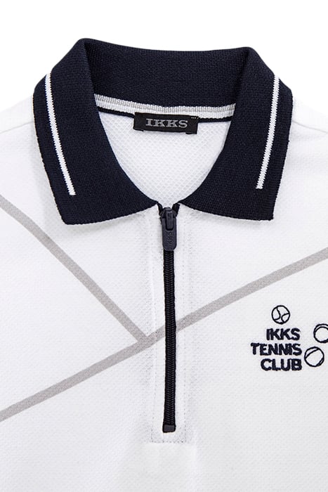 BOY'S WHITE HONEYCOMB POLO SHIRT WITH ZIP COLLAR