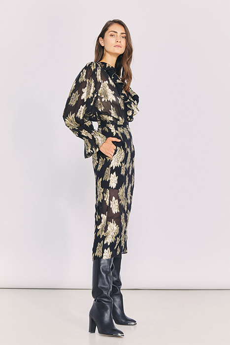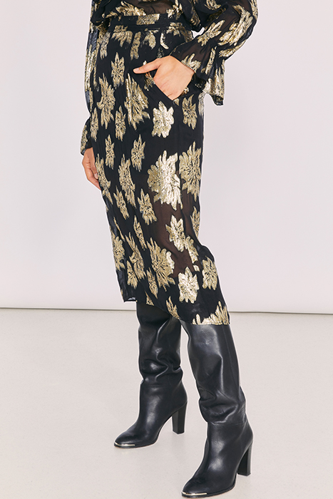 • WP31BRAINA-BLA37#• Floral print#• Highwaist#• Midi length#• Flowy fit#• 70% Viscose 30% Lurex#• Made in India
