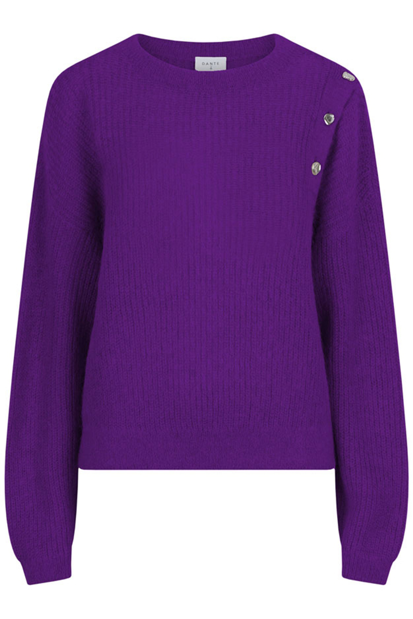 Add The Style Bruni In Colour Electric Purple To Your Sweater Collection. This Light Weight Rib Alpaca Wool Blend Sweater Has A Crew Neck And Long Sleeves. It Has Fancy Button Details Along The Left Shoulder, Adding A Touch Of Playfulness To This Style. Pair This Sweater With Our Leather Pants Jamois And Our Ankle Boots Kaia For A Total Dante6 Look.