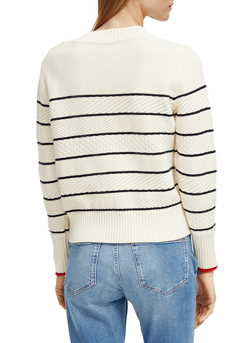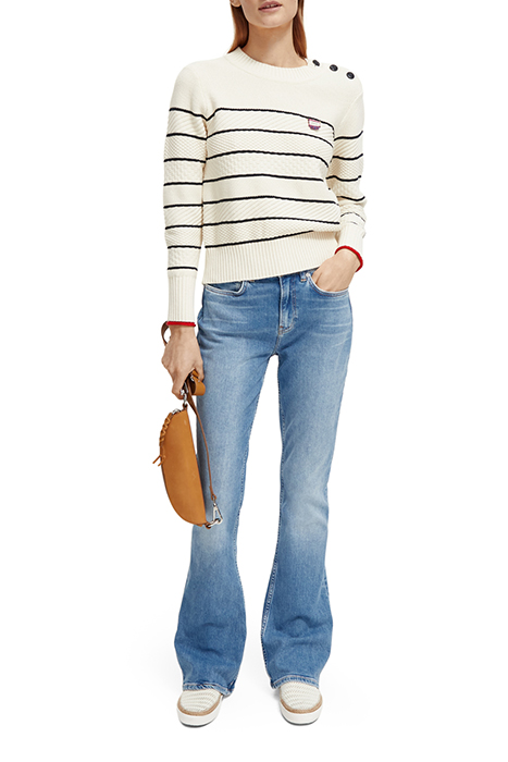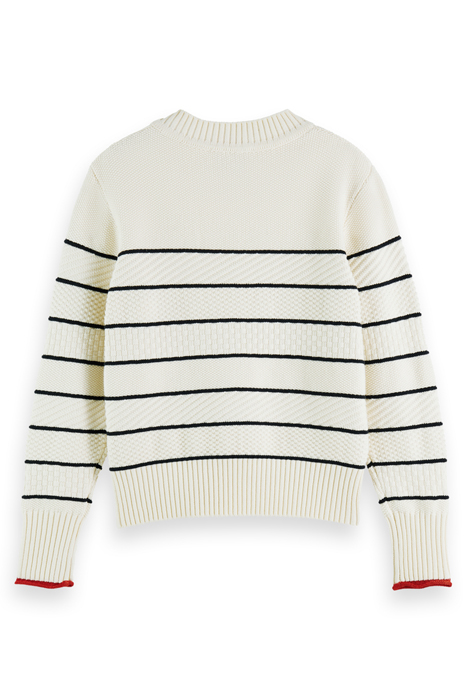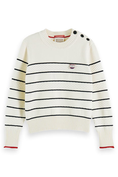 BUTTON SHOULDER STRIPED PULLOVER ECRU