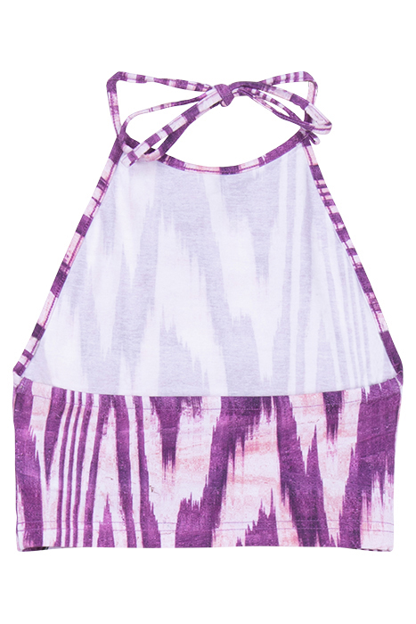 CALTAGIRONE CROPPED TOP PURPLE ABSTRACT ETNO AOP