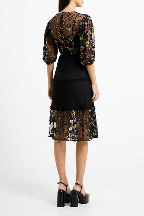 CAMIELLE EMBROIDERED MIDI DRES BLACK