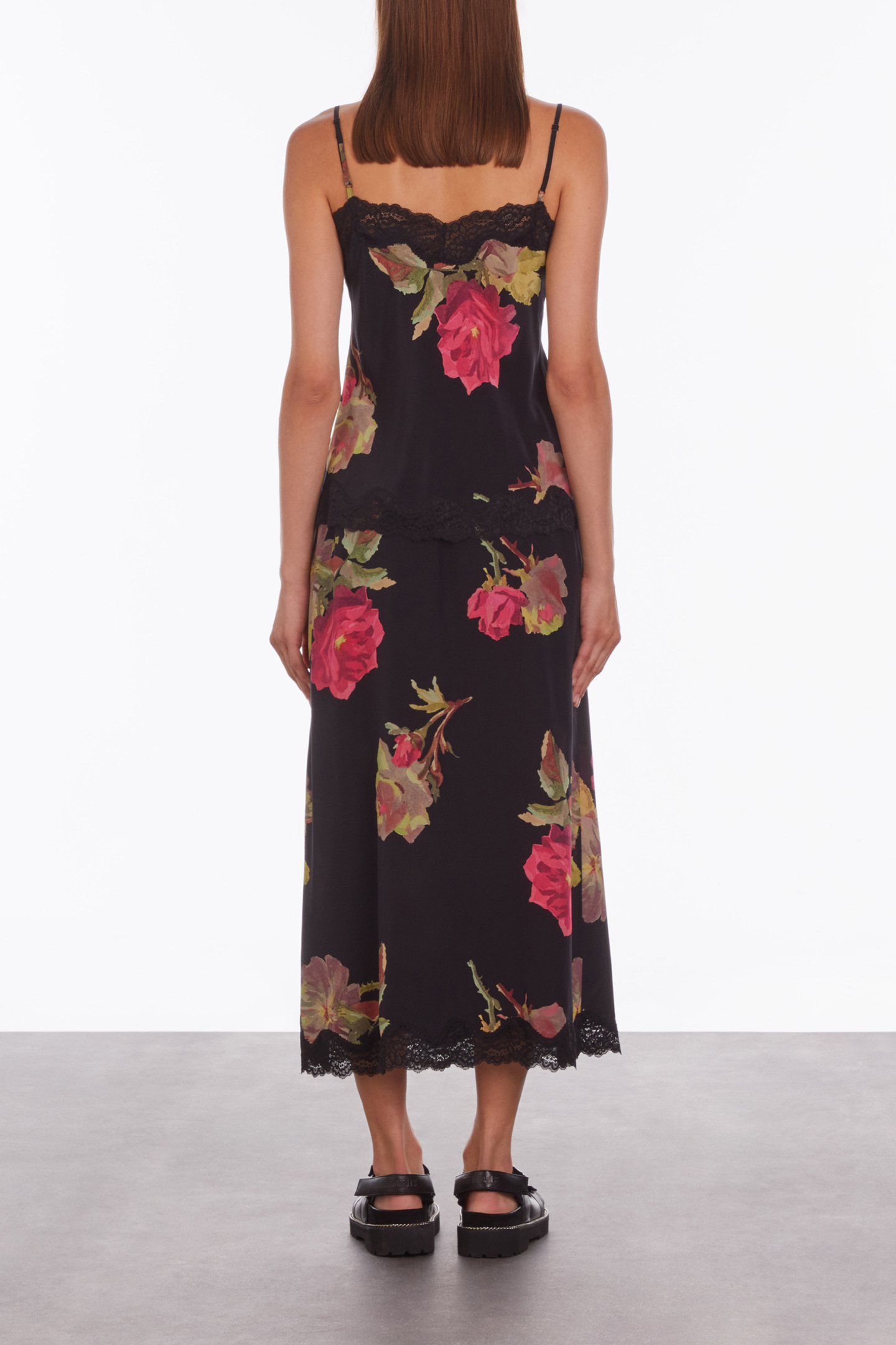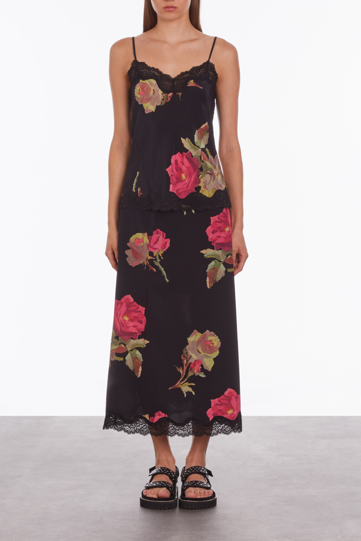 CAMISOLE WITH LACE NECKLINE AND BOTTOM PINK BLACK