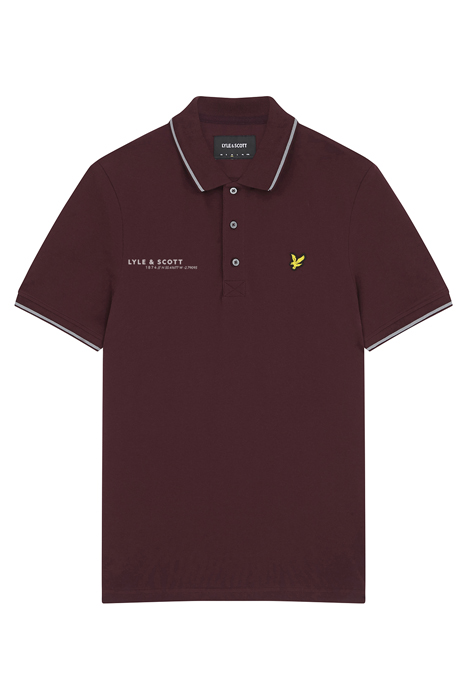 CO-ORDINATE PRINT TIPPED POLO SHIRT BURGUNDY/ MID GREY MARL