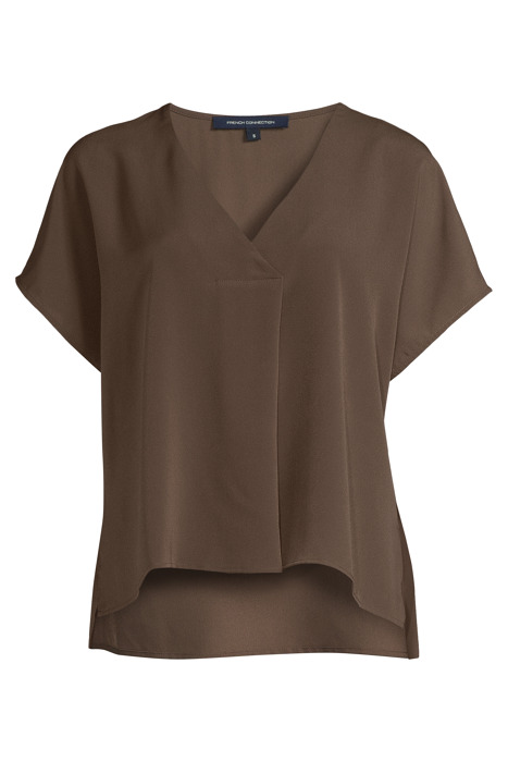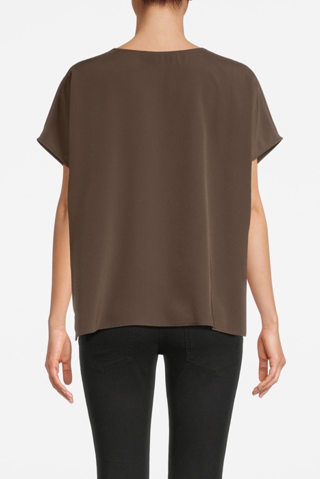 CREPE LIGHT S/S V NK TOP DEEP MOSS