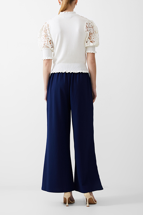 Update Your Knitwear With This Sweet Style. Our Crochet Lace Mix Knit Top Pairs Its Soft Body With Endearingly Elegant Crochet Lace Florals Across Its Décolletage And Short Puff Sleeves, Whilst Romantic Frills Make For The Perfect Finishing Touches Upon The Neckline, Cuffs And Hem.