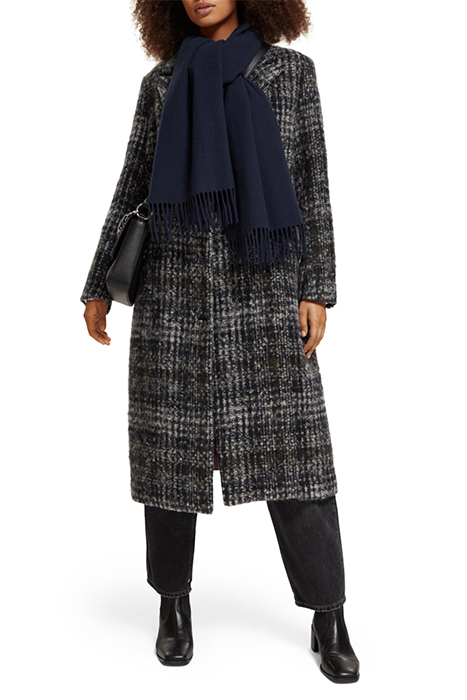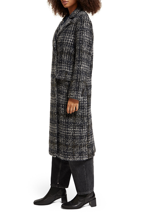 Introducing the Scotch & Soda Double-Breasted Coat in a Blue Check Night, a sophisticated and timeless piece that will elevate your outerwear collection. Crafted from a high-quality wool blend, this coat features a classic double-breasted design with a unique blue check pattern that adds a touch of elegance and style.