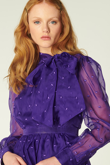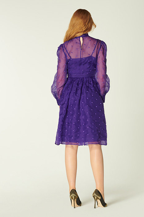 A Vibrant Play On Our Vintage-Inspired Glinda Pieces, Depp Takes On The Spotty Organza In Striking Violet. Crafted From Fine Silk Organza In Purple Dotted With Purple Embroidered Spots, This Long-Sleeve Dress Has A Round Neck Finished With An Oversized Bow, A Slip Layer, A Nipped Waist And A Full Skirt. Wear It With Sharp Courts And A Clutch When Those Dressing Up Moments Call.