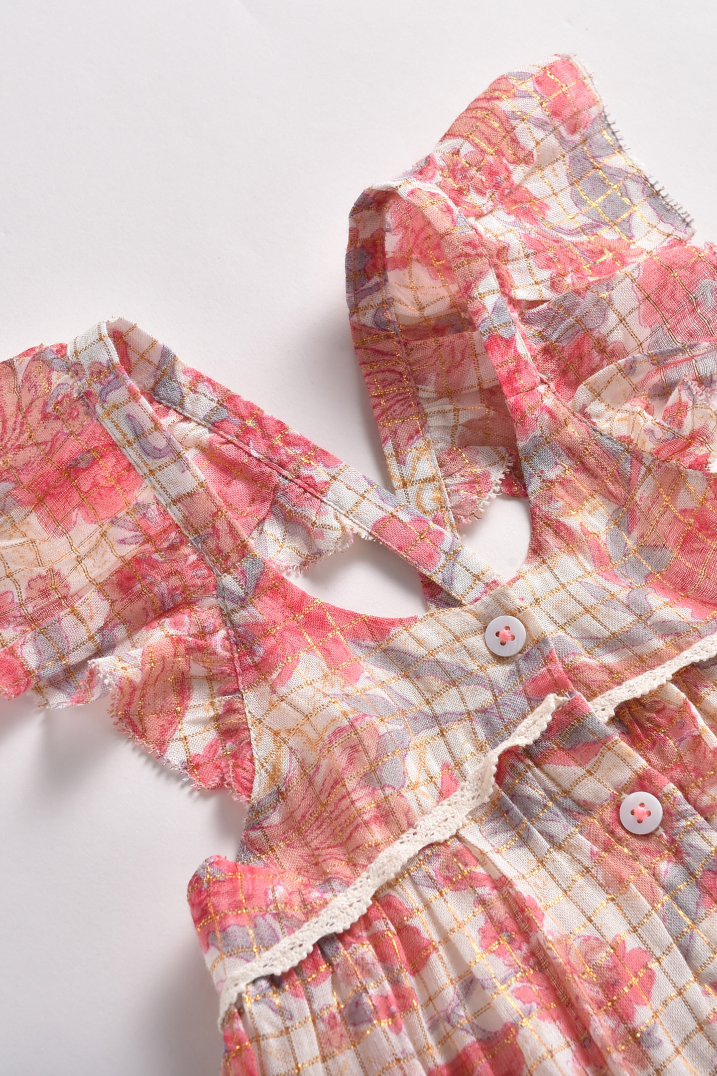 - Straps Criss-Crossed In Back Outlined By A Ruffle