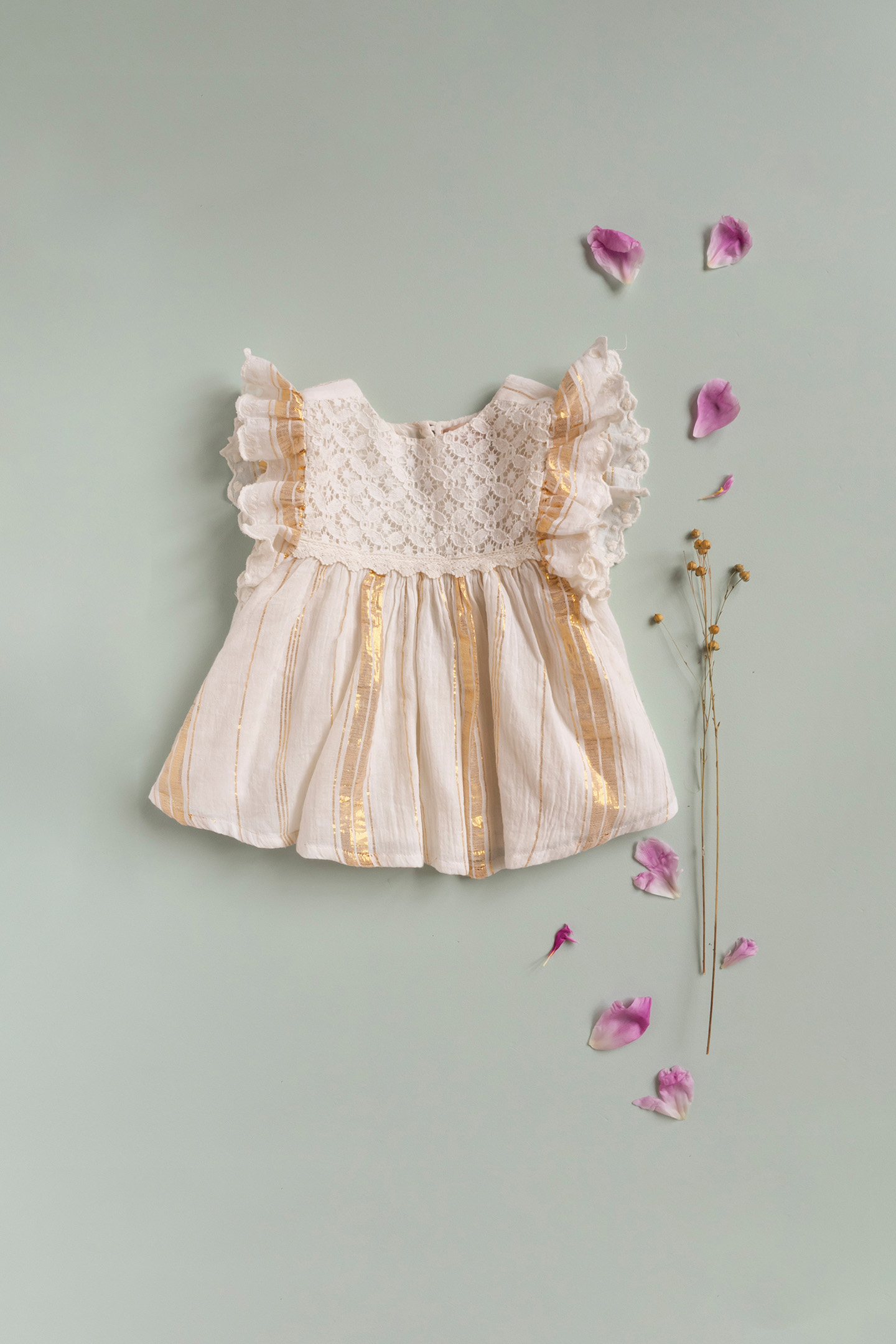 DRESS LYKA WHITE & GOLD STRIPES