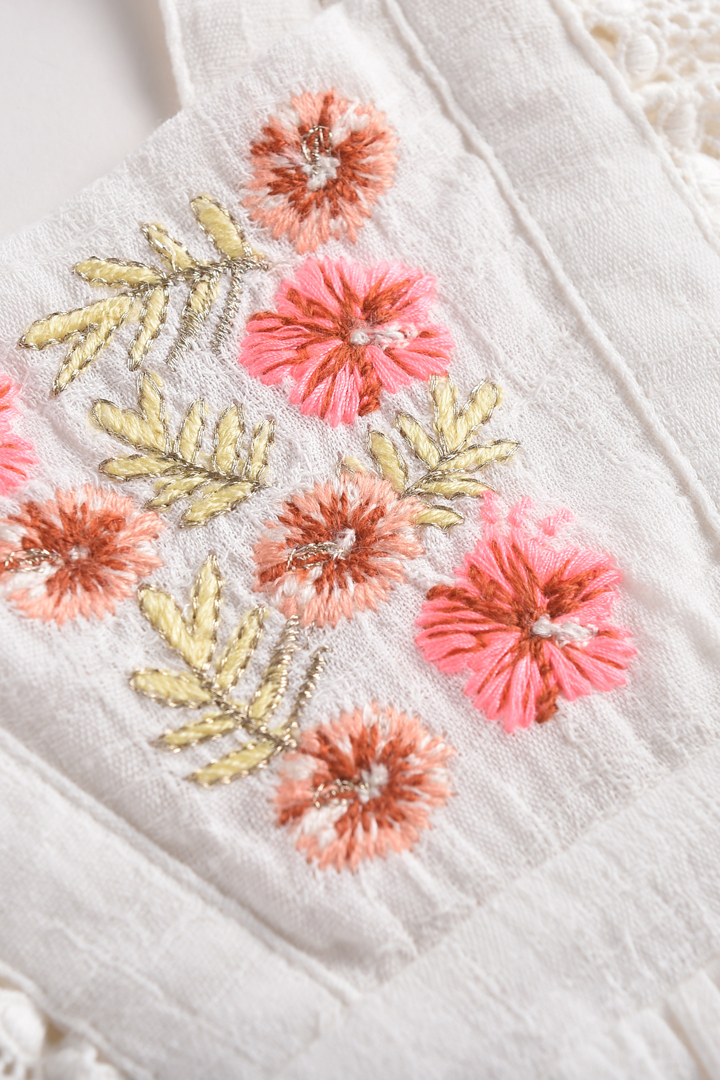 - Floral Embroideries On Front Of Dress