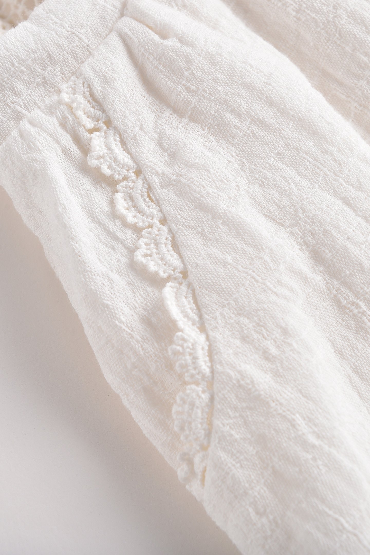 - Two Side Pockets Decorated With A Thin Scalloped Lace Trim
