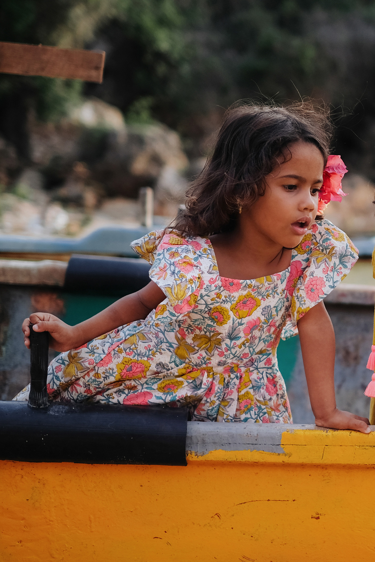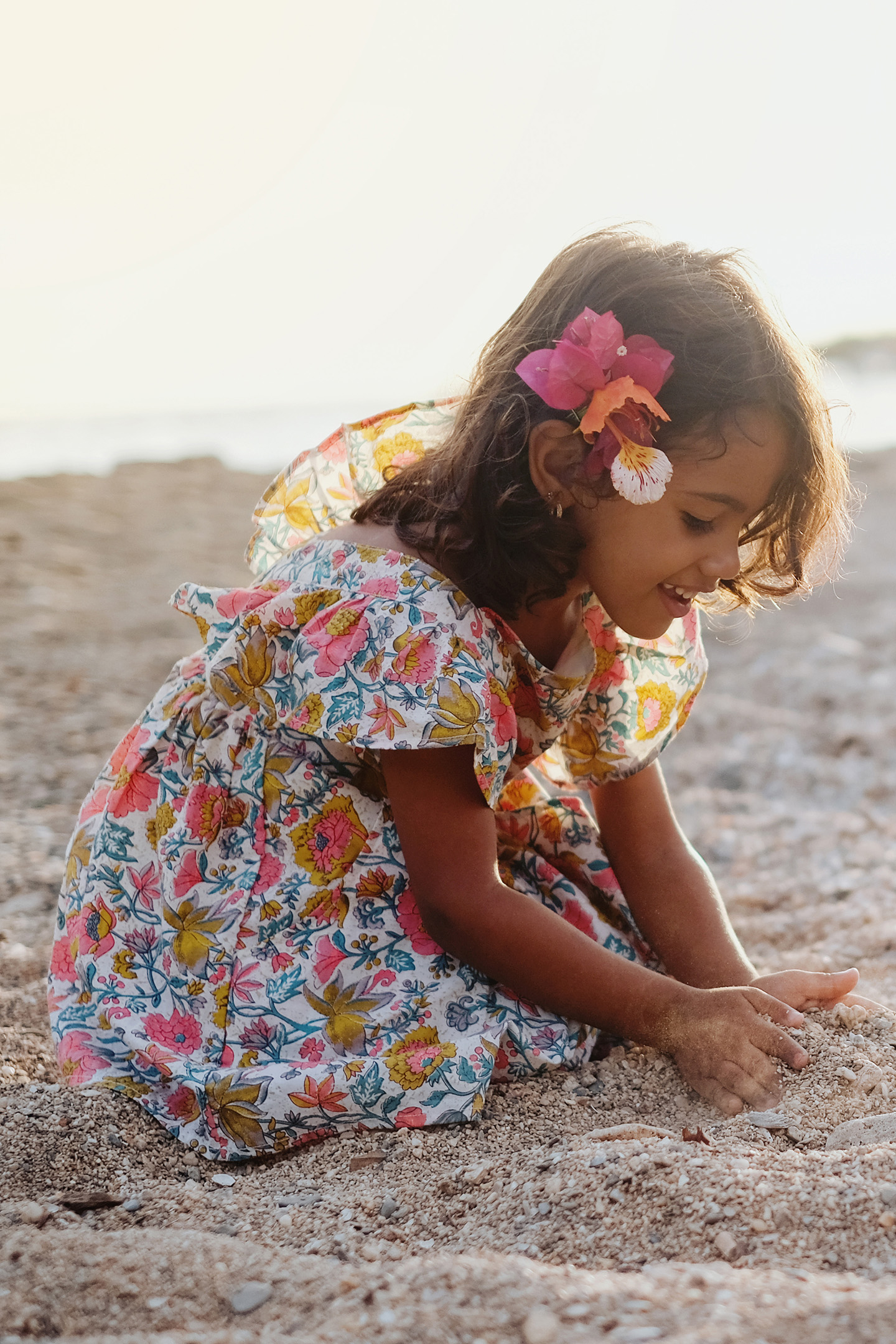 Flared Sleeveless Dress In Multi Flowers Print. Little Horizontal Pockets On The Sides. Wide Adjustable, Ruffled Straps Criss-Crossed In Back. %%Available In Size 3 Months To 14 Years Old%%Length Without Straps : Between 27Cm In 3 Months And 73Cm In 14Y%%Shell: 100% Cotton, Lining:100% Cotton