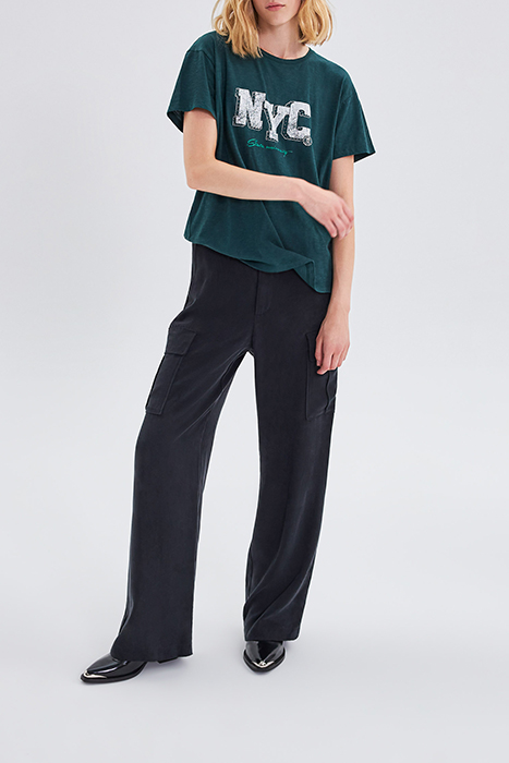 DUCK GREEN ORGANIC T-SHIRT WITH STUDDED SLOGAN