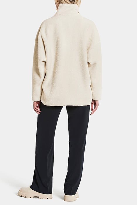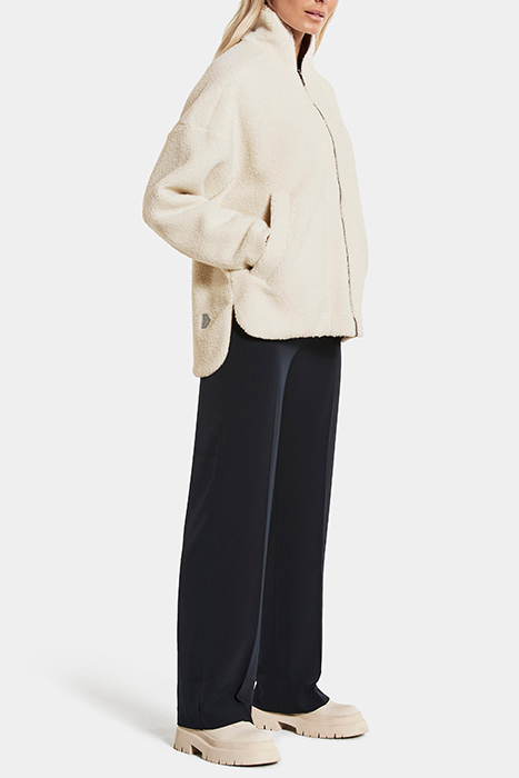 Trendy eye-catching oversize jacket. Modern siluett for the woman who is looking for a comfortable and well made jacket., Soft pile fabric. Warm and cosy., Oversize fit. The front is shorter than the back. Dropped Shoulder., Cos pile product with a printed lining. The print on the lining is inspired by a wild Honeysuckle, the region flower of Bohuslän.