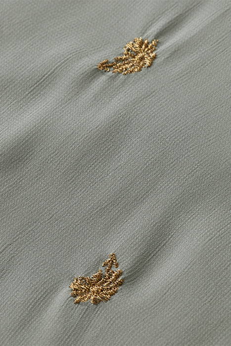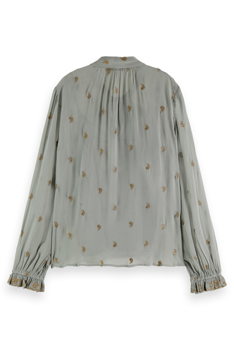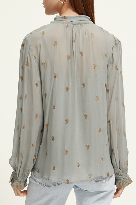 EMBROIDERED TOP WITH TIE NECK GREY SHEER JACQUARD
