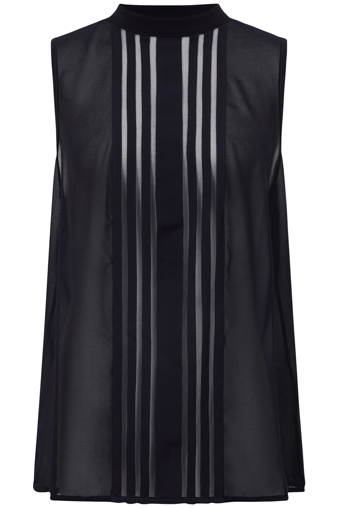The Navy Emery Sleeveless Blouse Is Crafted From A Sheer Fabrication For Feminine Allure. Mesh Panel Detailing Is Featured To The Chest And Reverse To Accentuate The Look. Wear With High-Rise Trousers To Transform Your Style From Day To Evening.