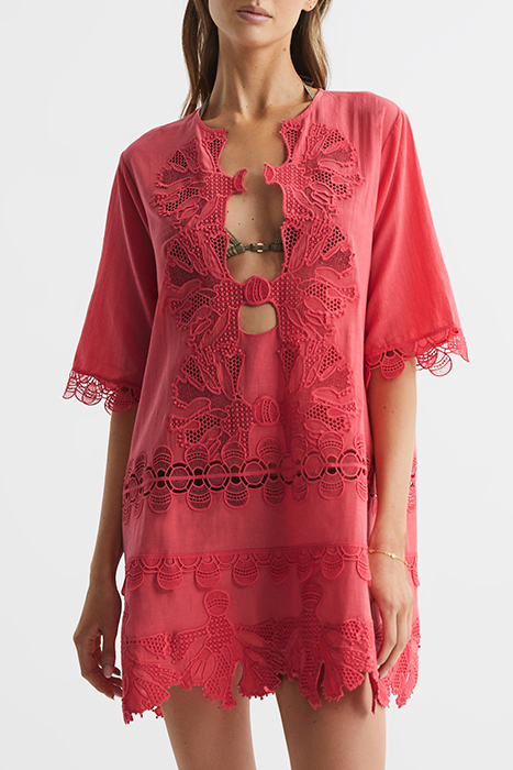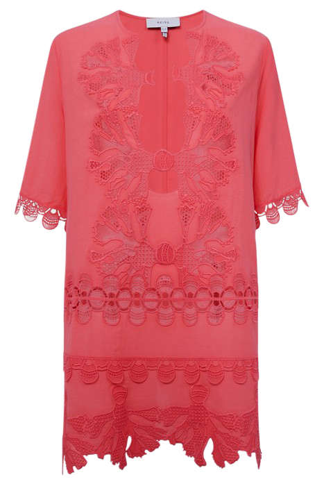 ETTA-EMRBOIDERED DRESS CORAL
