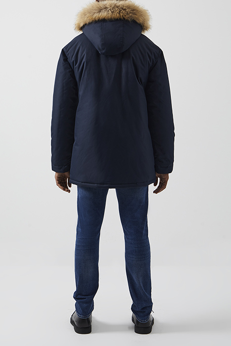 FAUX FUR TRIM HOODED PARKA COAT DARK NAVY