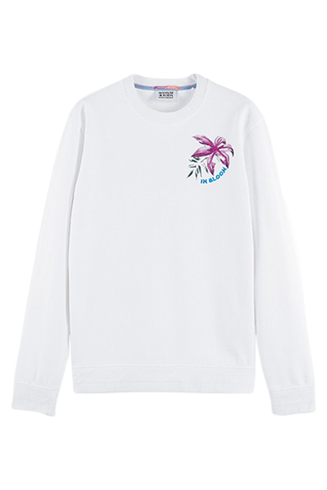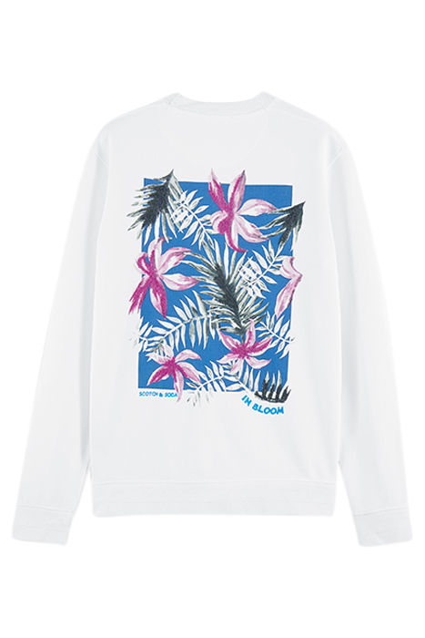 Introducing the Scotch & Soda Floral Artwork Felpa Crewneck Sweatshirt, a stylish and sustainable addition to your wardrobe. Crafted from organic cotton, this sweatshirt combines comfort with eco-friendly practices.